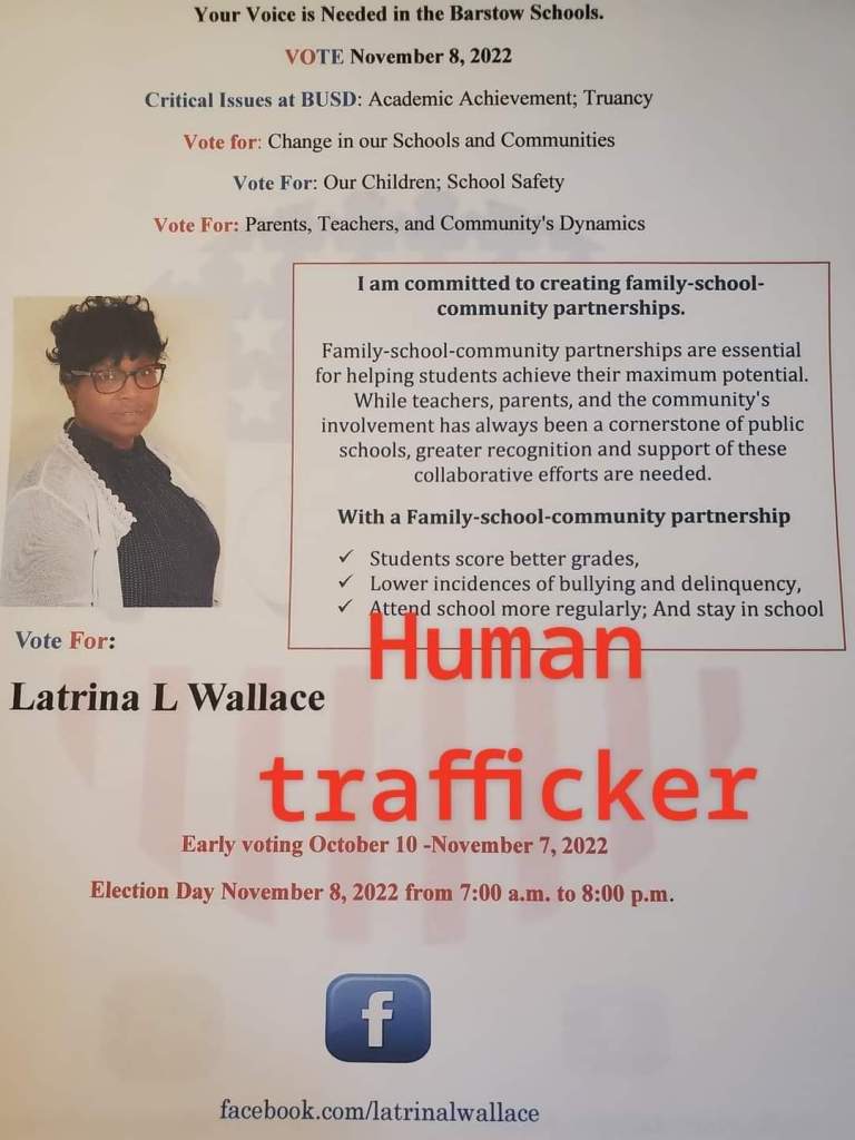 Traffickers called sheriffs on us saying we have no water, food , abuse her idk. Of course Trina likely saw the work I did from Heart for the guy running against her for Barstow Unified School District Trustee and got so angry and called her probably with Christie Smith since they work together.