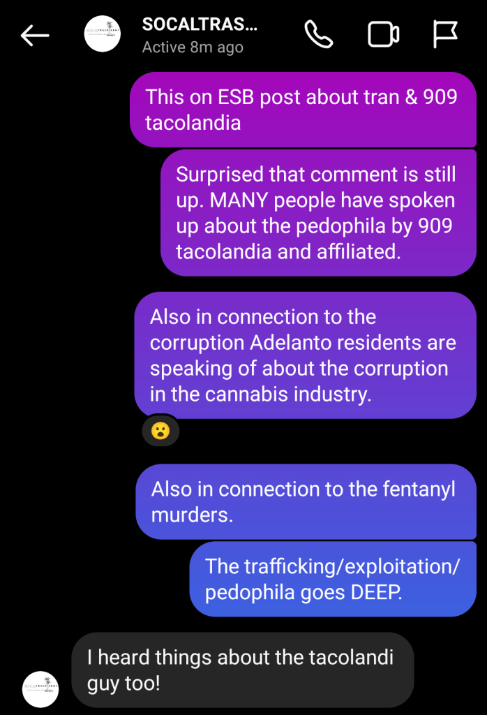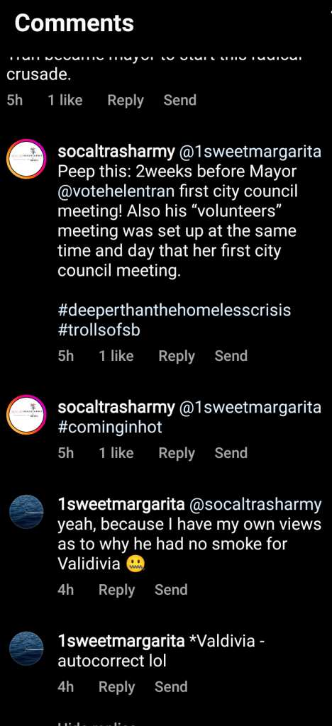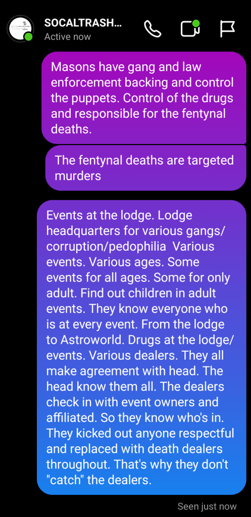 I had made socaltrasharmy aware of corruption with Helen tran, everything San Bernardino and Masonic Lodge in San Bernardino and their affiliation with pedophilia , trafficking etc. The next day she is in esb. playing her part in tran/esb/celebrities corruption.